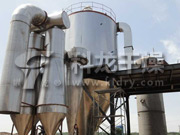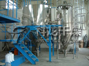 空气经过滤和加热,进入干燥器顶部空气分配器,热空气呈螺旋状均匀地进入干燥室。料液经塔体顶部的高速离心雾化器,(旋转)喷雾成极细微的雾状液珠,与热空气并流接触在极短的时间内可干燥为成品。成品连续地由干燥塔底部和旋风分离器中输出,废气由风机排空。
