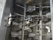 本系列混合机以强烈、高效混合为特点、卧式筒体内两根搅拌等速反向旋转,上特殊布置的桨叶确保物料径向、环向、轴向三向运动,形成复合循环,在极短的时间内达到均匀混合。